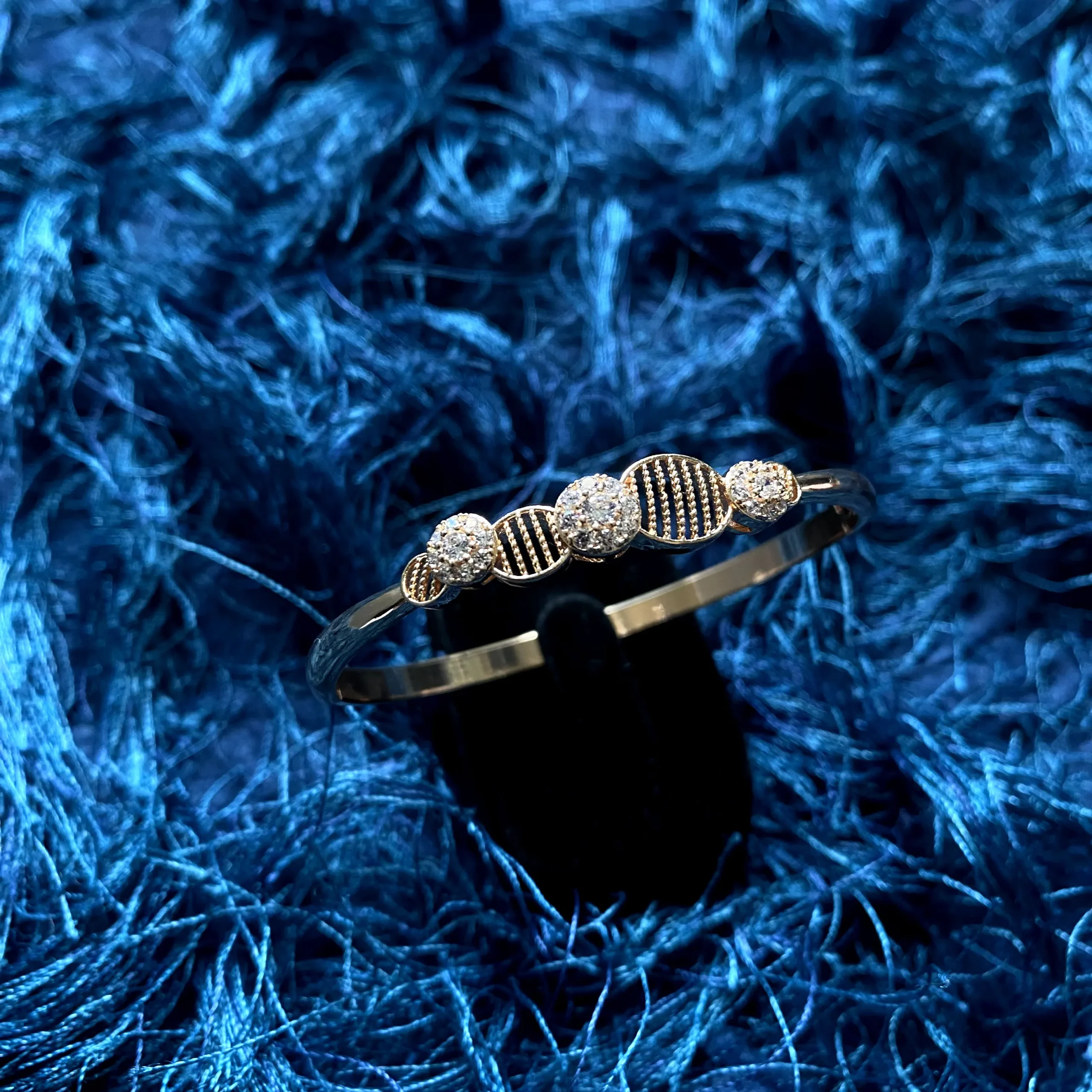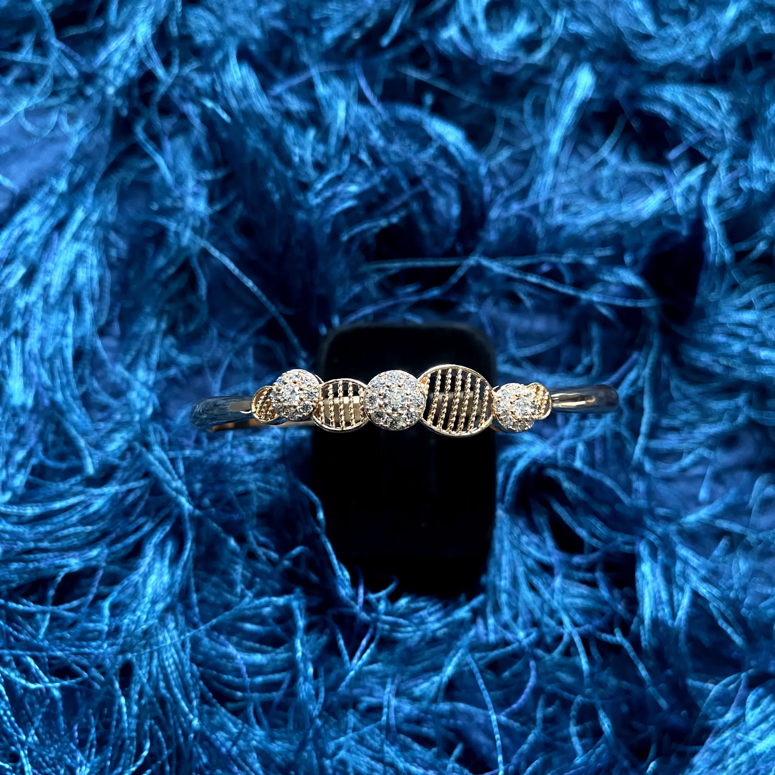 A 21k gold-plated bangle with alternating zircon and textured circular motifs, offering a modern yet timeless elegance.