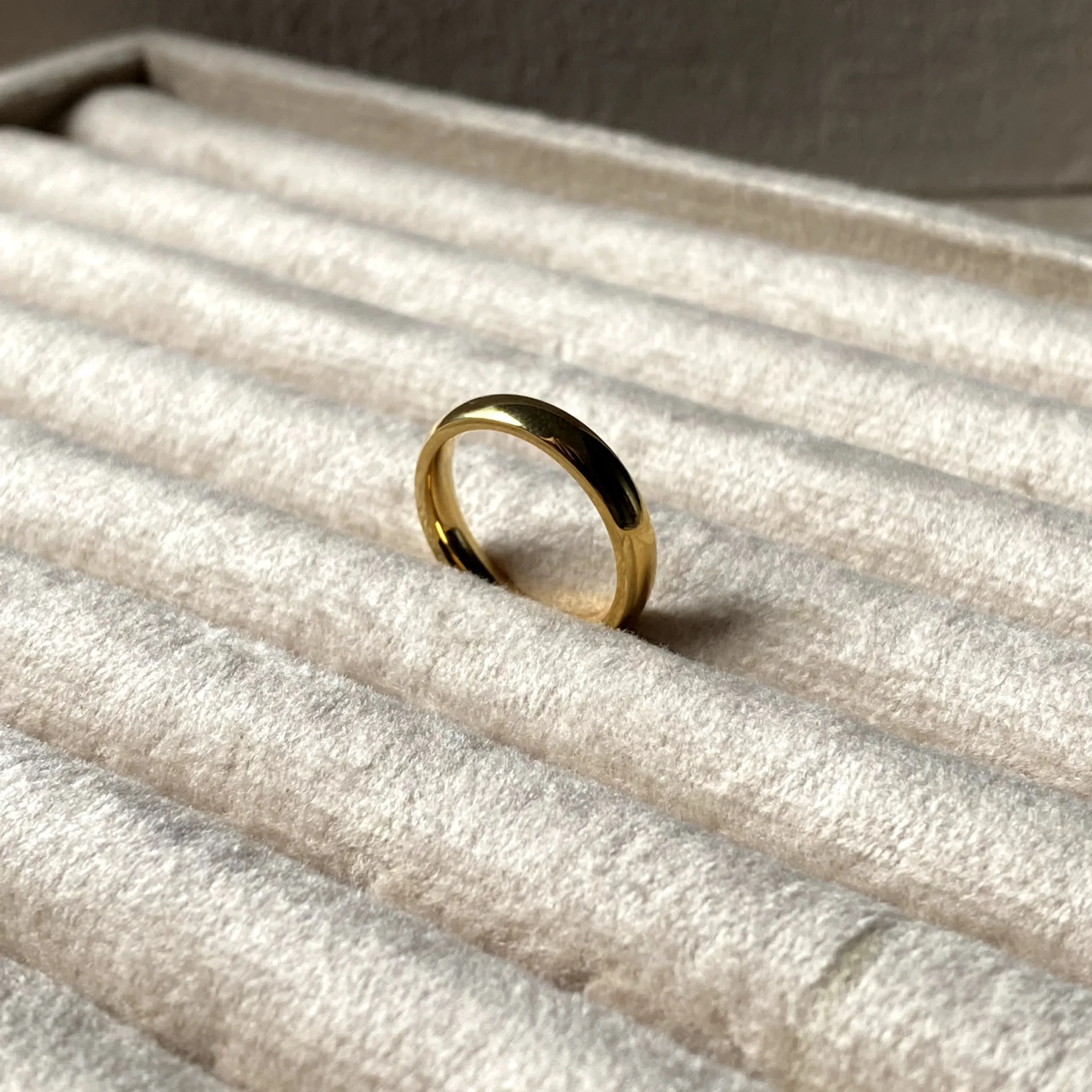 Crafted with 24k gold plating, this plain band ring embodies pure elegance and simplicity. Its smooth, polished finish reflects light beautifully, making it a versatile piece that pairs effortlessly with both casual and formal looks. A timeless essential in every collection, it symbolizes strength, unity, and enduring style. Whether worn solo or stacked, this ring offers understated luxury that never goes out of fashion.