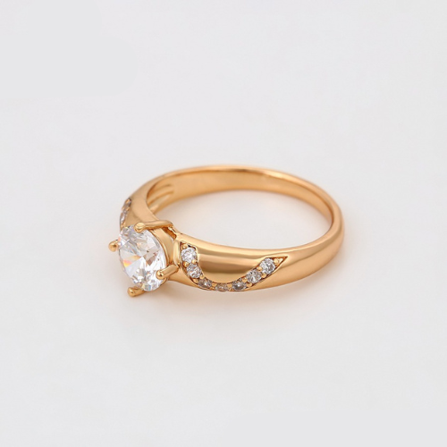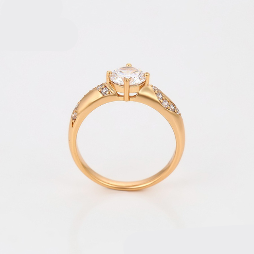 A gold-plated ring featuring a radiant central stone framed by softly curved, stone-accented shoulders for a refined, luminous look.