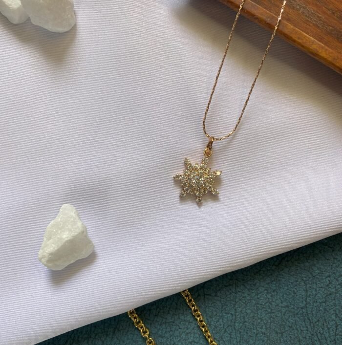 A rose-gold pendant with a dazzling zircon snowflake centerpiece, blending delicate charm with timeless sparkle.
