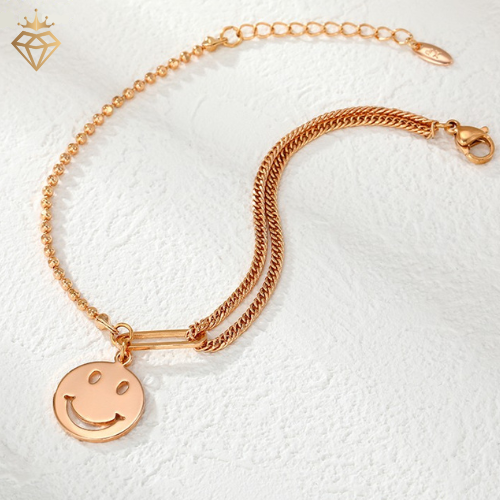 A gold-plated bracelet featuring a mixed-chain design with a subtle smile charm, blending playful detail with clean, modern elegance.