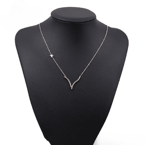 The Vega pendant features a sleek gold-plated V-shaped design paired with a delicate star accent. A modern piece that adds effortless charm and subtle shine to any look.